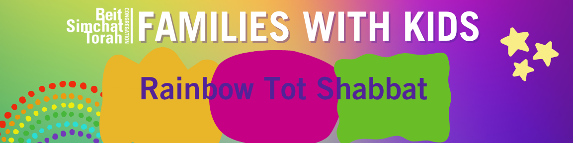 Rainbow Tot Shabbat offers a warm, inclusive space for families to connect to LGBTQ+ Jewish community, our calendar of holidays, and other parents of young children. Introduce your children to a vibrant and welcoming Jewish life full of joy, music, and pride. Drop-in for any or all of these two-part mornings for a hands-on creative Jewish holiday activity at 10:15 and a musical Tot Shabbat at 11:30. All are also welcome to join for kiddush lunch with the whole community at 12:30. A program of Congregation Beit Simchat Torah, a spiritual home for people of all sexual orientations and gender identities.